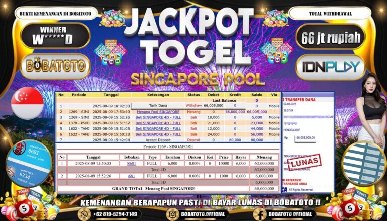 BOBATOTO JACKPOT TOGEL SINGAPORE Rp.66,000,000,- LUNAS!!