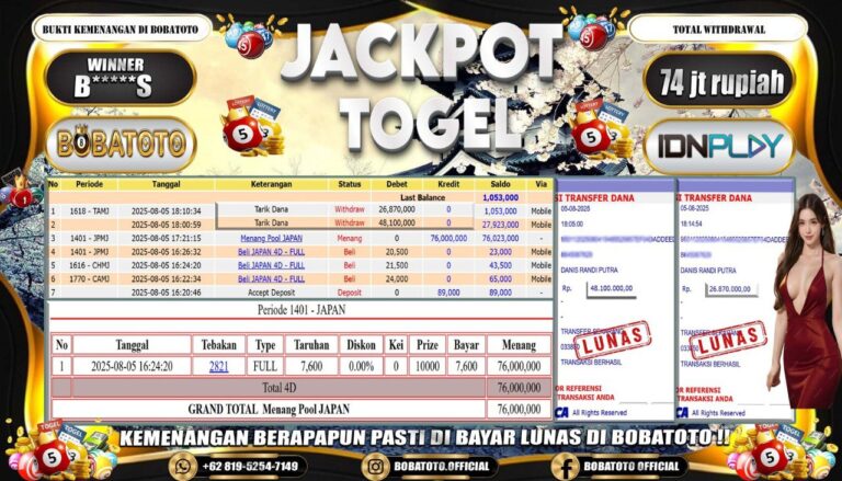 BOBATOTO JACKPOT TOGEL JAPAN Rp.74,000,000,- LUNAS!!