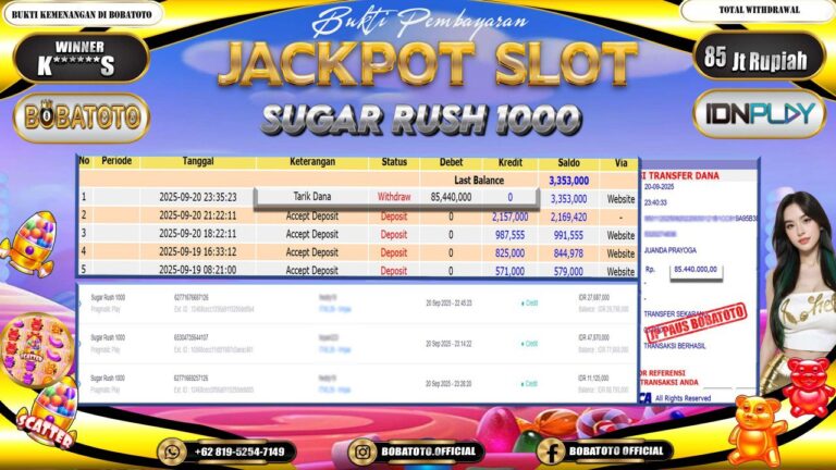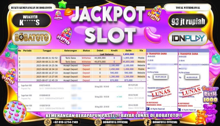 BOBATOTO – Selamat kepada User id : K*****S Telah berhasil mendapatkan kemenangan besar pada permainan SLOT PRAGMATIC SUGAR RUSH 1000 Dengan kemenangan Sebesar Rp.93,000,000,-. Setelah mengisi formulir withdraw dengan kurung waktu hanya 5 – 10 menit pihak bobatoto sudah melakukan transfer kepada pemilik Userid dan dana sudah dapat di cairkan oleh pemenang. Bukti pembayaran yang kami berikan merupakan bukti pembayaran yang SAH…