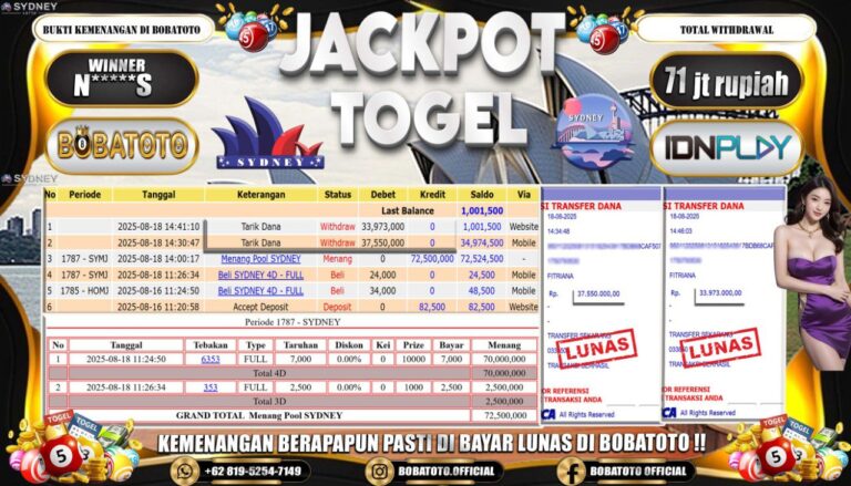 BOBATOTO JACKPOT TOGEL SYDNEY LOTTO Rp.71,000,000,- LUNAS!!