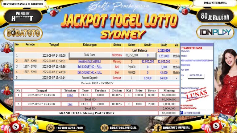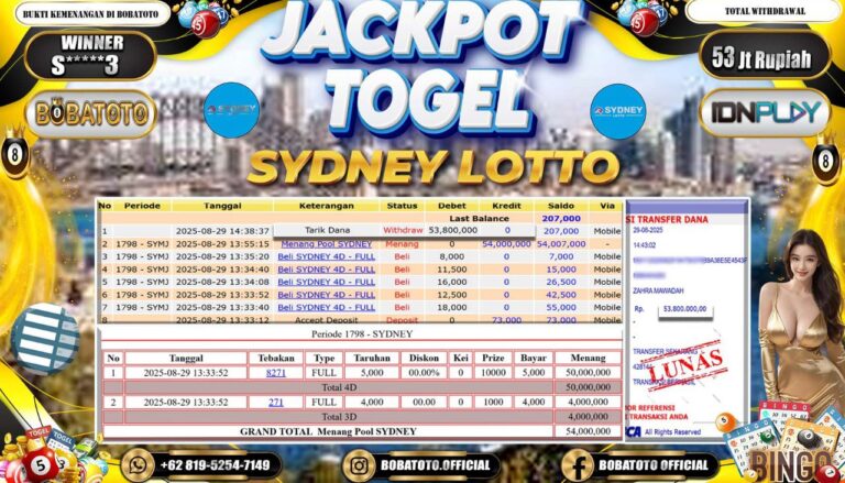 BOBATOTO JACKPOT TOGEL SYDNEY LOTTO Rp.53,000,000,- LUNAS!!