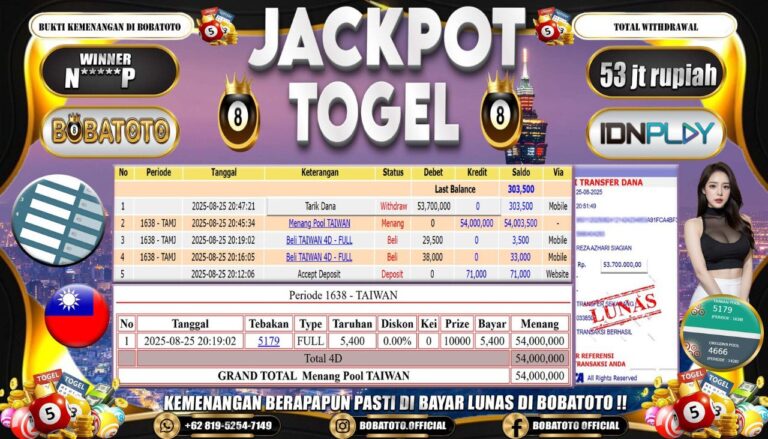 BOBATOTO JACKPOT TOGEL TAIWAN Rp.54,000,000,- LUNAS!!