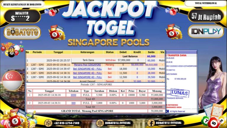 BOBATOTO JACKPOT TOGEL SINGAPORE Rp.57,000,000,- LUNAS!!