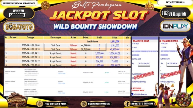 BOBATOTO – Selamat kepada User id :P******7 Telah berhasil mendapatkan kemenangan besar pada permainan SLOT MAHJONG WINS-2 Dengan kemenangan Sebesar Rp.103,000,000-. Setelah mengisi formulir withdraw dengan kurung waktu hanya 5 – 10 menit pihak bobatoto sudah melakukan transfer kepada pemilik Userid dan dana sudah dapat di cairkan oleh pemenang. Bukti pembayaran yang kami berikan merupakan bukti pembayaran yang SAH / VALID yang…
