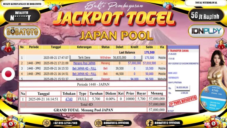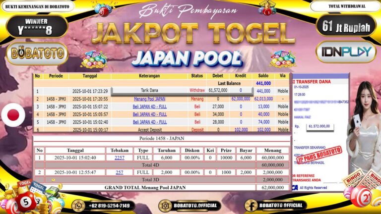 BOBATOTO JACKPOT TOGEL JAPAN Rp.61,000,000,- LUNAS!!