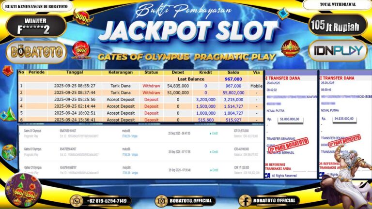 BOBATOTO – Selamat kepada User id : Y******0 Telah berhasil mendapatkan kemenangan besar pada permainan SLOT PRAGMATIC GATES OF OLYMPUS 1000 Dengan kemenangan Sebesar Rp.102,000,000,-. Setelah mengisi formulir withdraw dengan kurung waktu hanya 5 – 10 menit pihak bobatoto sudah melakukan transfer kepada pemilik Userid dan dana sudah dapat di cairkan oleh pemenang. Bukti pembayaran yang kami berikan merupakan bukti pembayaran…