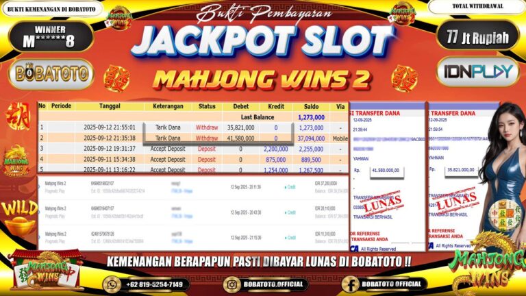 BOBATOTO JACKPOT SLOT MAHJONG WINS-2 Rp.77,000,000- LUNAS!!