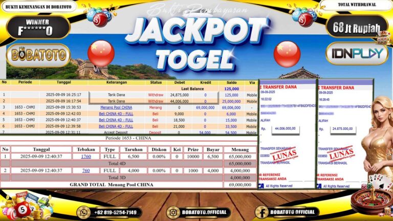BOBATOTO JACKPOT TOGEL CHINA Rp.68,000,000,- LUNAS!!