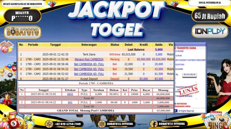BOBATOTO JACKPOT TOGEL CAMBODIA Rp.65,000,000,- LUNAS!!
