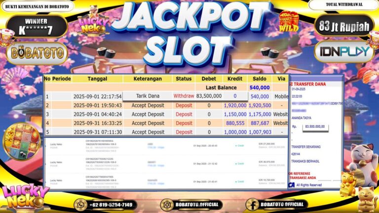 BOBATOTO – Selamat kepada User id :K******7 Telah berhasil mendapatkan kemenangan besar pada permainan SLOT LUCKY NEKO Dengan kemenangan Sebesar Rp.83,000,000-. Setelah mengisi formulir withdraw dengan kurung waktu hanya 5 – 10 menit pihak bobatoto sudah melakukan transfer kepada pemilik Userid dan dana sudah dapat di cairkan oleh pemenang. Bukti pembayaran yang kami berikan merupakan bukti pembayaran yang SAH / VALID yang…