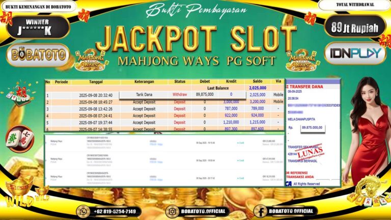BOBATOTO – Selamat kepada User id :J******K Telah berhasil mendapatkan kemenangan besar pada permainan SLOT MAHJONG WAYS Dengan kemenangan Sebesar Rp.89,000,000-. Setelah mengisi formulir withdraw dengan kurung waktu hanya 5 – 10 menit pihak bobatoto sudah melakukan transfer kepada pemilik Userid dan dana sudah dapat di cairkan oleh pemenang. Bukti pembayaran yang kami berikan merupakan bukti pembayaran yang SAH / VALID yang…