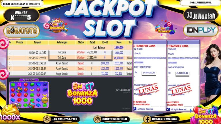 BOBATOTO – Selamat kepada User id : K******5 Telah berhasil mendapatkan kemenangan besar pada permainan SLOT SWEET BONANZA 1000 Dengan kemenangan Sebesar Rp.73,000,000,-. Setelah mengisi formulir withdraw dengan kurung waktu hanya 5 – 10 menit pihak bobatoto sudah melakukan transfer kepada pemilik Userid dan dana sudah dapat di cairkan oleh pemenang. Bukti pembayaran yang kami berikan merupakan bukti pembayaran yang SAH /…
