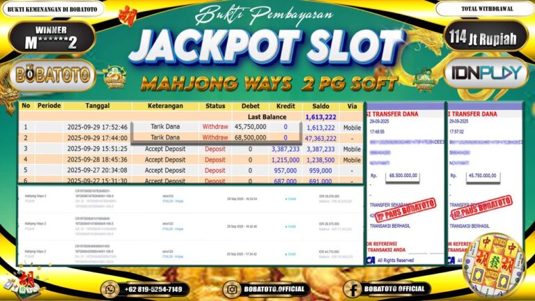 BOBATOTO – Selamat kepada User id :M******2 Telah berhasil mendapatkan kemenangan besar pada permainan SLOT MAHJONG WAYS 2 Dengan kemenangan Sebesar Rp.114,000,000-. Setelah mengisi formulir withdraw dengan kurung waktu hanya 5 – 10 menit pihak bobatoto sudah melakukan transfer kepada pemilik Userid dan dana sudah dapat di cairkan oleh pemenang. Bukti pembayaran yang kami berikan merupakan bukti pembayaran yang SAH /…