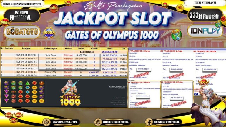BOBATOTO JACKPOT SLOT PRAGMATIC GATES OF OLYMPUS 1000 Rp.333,000,000,- LUNAS!!