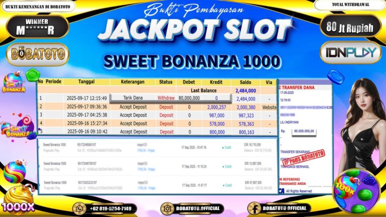 BOBATOTO – Selamat kepada User id : M******R Telah berhasil mendapatkan kemenangan besar pada permainan SLOT SWEET BONANZA 1000 Dengan kemenangan Sebesar Rp.80,000,000,-. Setelah mengisi formulir withdraw dengan kurung waktu hanya 5 – 10 menit pihak bobatoto sudah melakukan transfer kepada pemilik Userid dan dana sudah dapat di cairkan oleh pemenang. Bukti pembayaran yang kami berikan merupakan bukti pembayaran yang SAH…