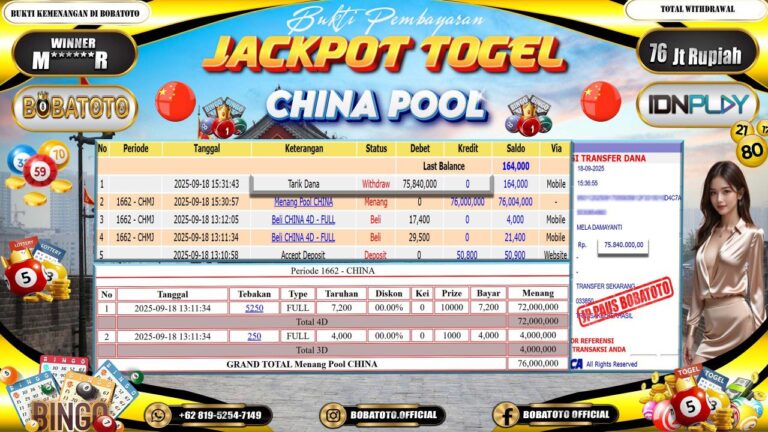 BOBATOTO JACKPOT TOGEL CHINA Rp.76,000,000,- LUNAS!!