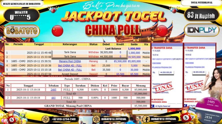BOBATOTO JACKPOT TOGEL CHINA Rp.83,000,000,- LUNAS!!