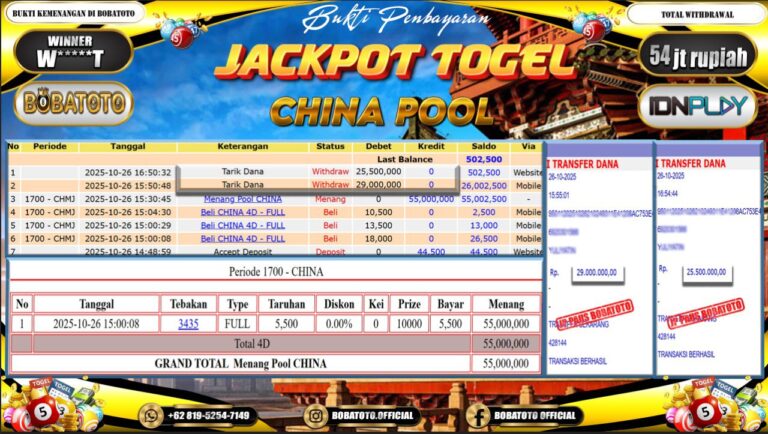BOBATOTO JACKPOT TOGEL CHINA Rp.54,000,000,- LUNAS!!