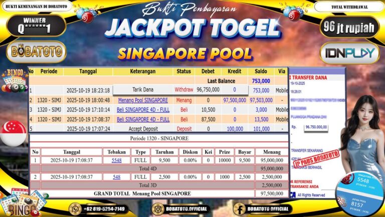 BOBATOTO JACKPOT TOGEL SINGAPORE Rp.96,000,000,- LUNAS!!