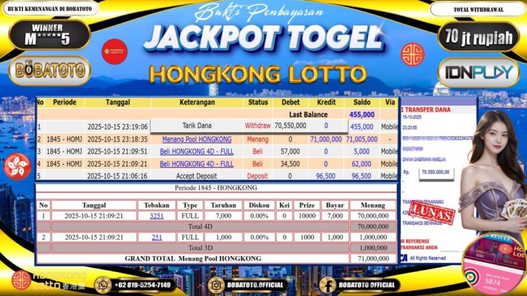 BOBATOTO JACKPOT TOGEL HONGKONG LOTTO Rp.70,000,000,- LUNAS!!