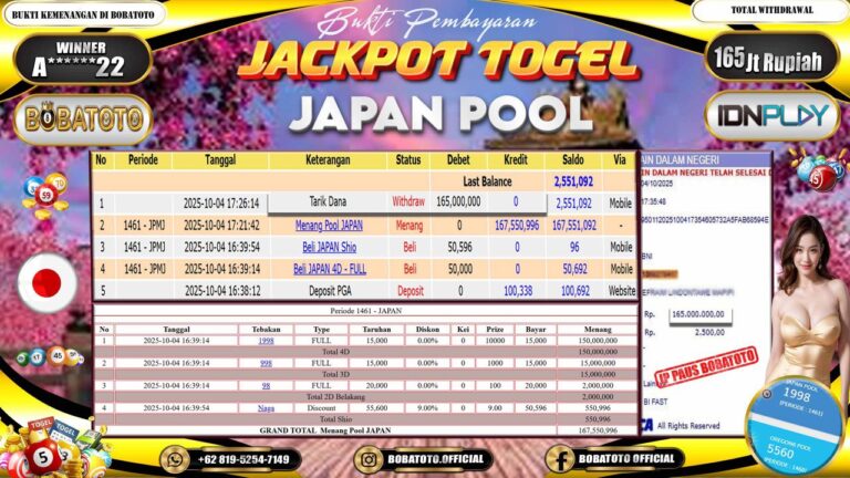BOBATOTO JACKPOT TOGEL JAPAN Rp.165,000,000,- LUNAS!!