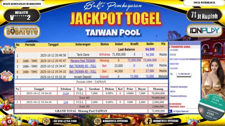 BOBATOTO JACKPOT TOGEL TAIWAN Rp.71,000,000,- LUNAS!!