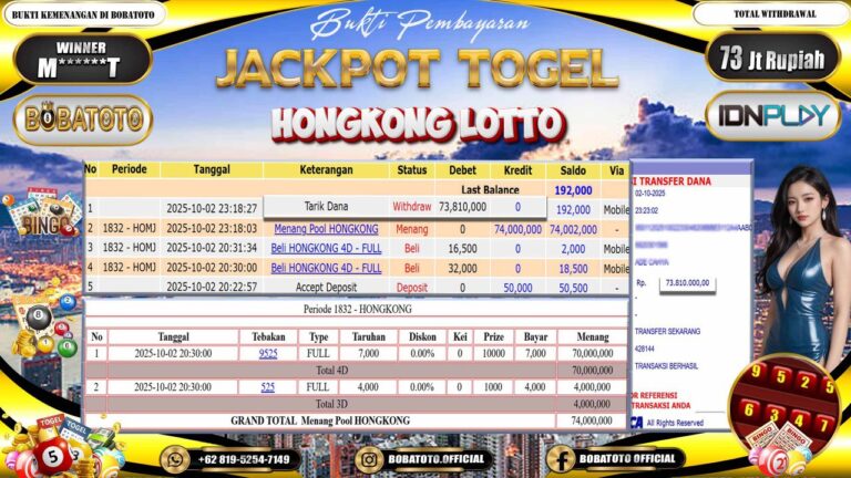 BOBATOTO JACKPOT TOGEL HONGKONG LOTTO Rp.73,000,000,- LUNAS!!
