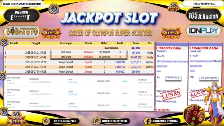 BOBATOTO JACKPOT SLOT PRAGMATIC GATES OF OLYMPUS SUPER SCATTER Rp.105,000,000,- LUNAS!!