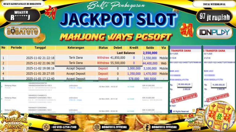 BOBATOTO JACKPOT SLOT MAHJONG WAYS Rp.97,000,000- LUNAS!!